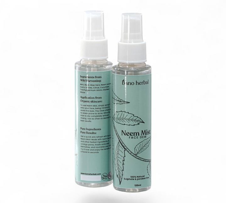Get a quick skin refresh with Bano Herbal’s Neem Mist! Made with neem leaves and other herbal ingredients, it unclogs pores, treats acne and blemishes, and nourishes your skin. Try it now and enjoy the benefits of a facial in seconds.
